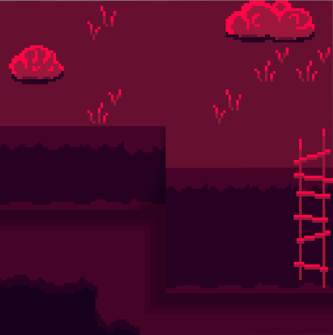 Tileset of the Crimson Wilds with shadows, props, and the ground.